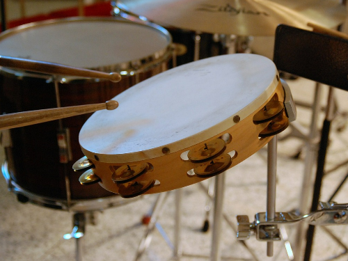 3. 탬버린(Tambourine): 손으로 흔들거나 두드려 소리를 내는 악기로, 민속 음악부터 클래식, 팝 음악까지 폭넓게 사용됩니다.