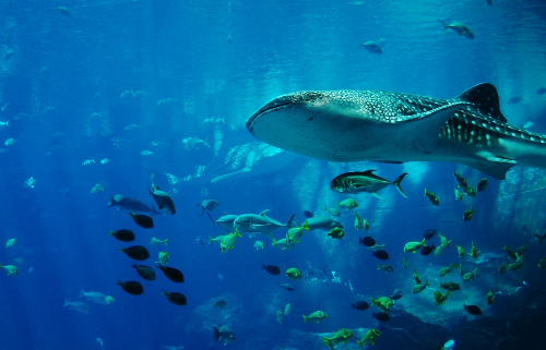 이곳의 하이라이트는 "쿠로시오 바다(Kuroshio Sea)"라 불리는 초대형 수조입니다. 높이 8.2m, 폭 22.5m, 두께 60cm의 아크릴 패널을 통해 마치 바닷속을 걷는 듯한 기분을 느낄 수 있습니다. 특히 세계에서 가장 큰 물고기인 고래상어(Whale Shark)가 여유롭게 헤엄치는 모습을 볼 수 있는 곳으로 유명합니다.