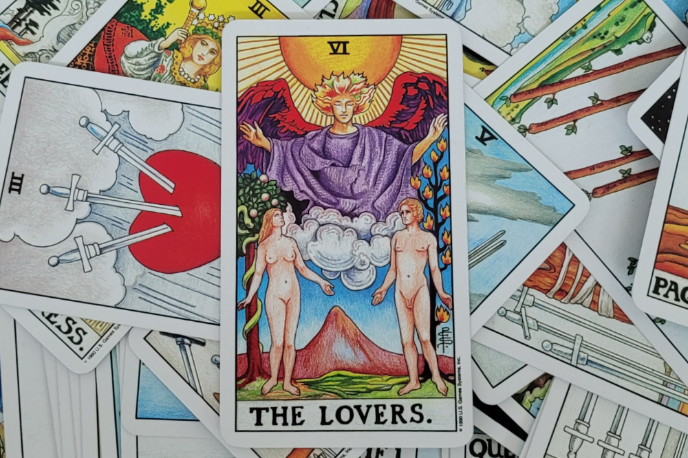 연인은 '사랑' 그 자체만을 뜻하지 않습니다. 이 카드는 보다 깊이 있는 선택의 테마, 즉 내면과 외면, 의무와 욕망, 옳음과 끌림 사이에서 갈등하며 선택을 통해 정체성을 확립해가는 존재를 상징합니다.