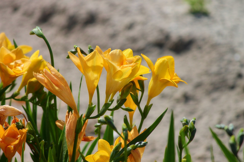 - 프리지아는 햇볕을 충분히 받는 환경에서 잘 자랍니다.