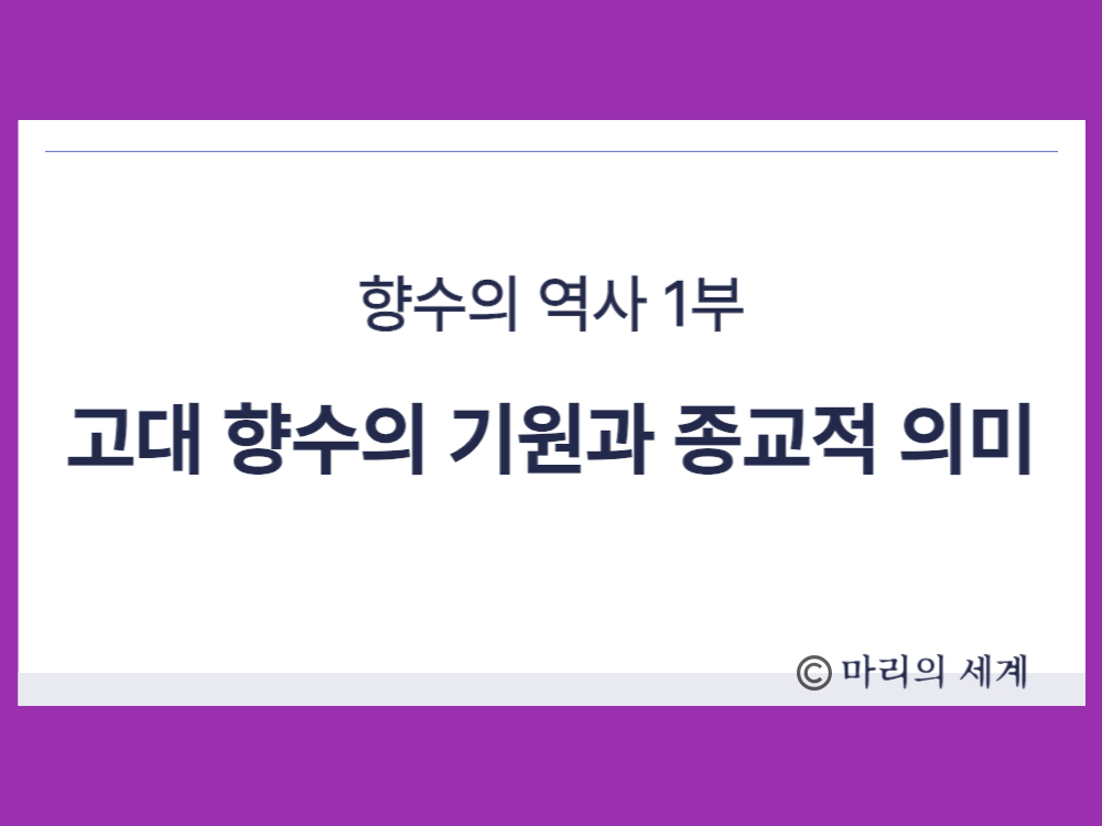 우리는 옷을 입고, 화장을 하듯 향수를 뿌리며 자신을 표현합니다. 향기는 때로 첫인상을 좌우하고, 때로 추억을 불러일으키는 강력한 감각이죠. 하지만 향수가 단순히 몸을 꾸미는 사치품이 아니었다는 사실을 알고 계셨나요?