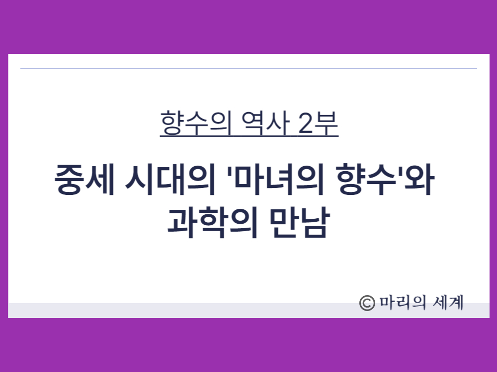 지난 1부에서는 고대 이집트인들이 향수를 신에게 바치는 신성한 의식에 사용했음을 알아보았죠. 하지만 중세 시대로 접어들면서, 향수는 신의 영역에서 멀어지고 미신과 오해의 대상이 되기 시작합니다. 중세인들에게 향수는 때로 치료제였지만, 때로는 신의 뜻을 거스르는 마법의 물약으로 여겨지기도 했습니다.