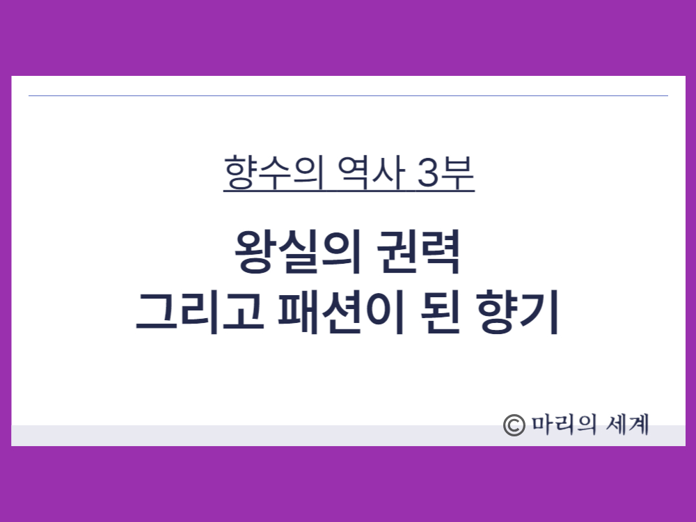 향수가 어떻게 왕실의 권력과 패션을 상징하는 도구가 되었을까요? 루이 14세의 '궁정 향수'부터 마리 앙투아네트의 우아한 향기까지, 귀족 문화와 맞물려 발전한 향수의 역사를 흥미롭게 다룹니다.