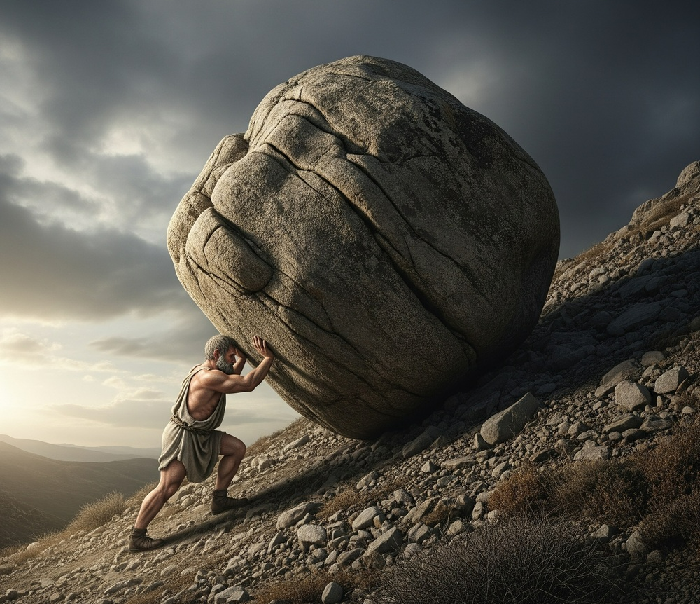 가장 먼저 떠올릴 수 있는 '반복'의 원형은 그리스 신화 속 시지프스(Sisyphus)입니다. 신들을 속인 죄로 그는 거대한 바위를 산 정상까지 밀어 올리는 형벌을 받습니다. 정상에 도달하려는 순간, 바위는 다시 굴러떨어지고 그는 이 과정을 영원히 반복해야만 하죠.